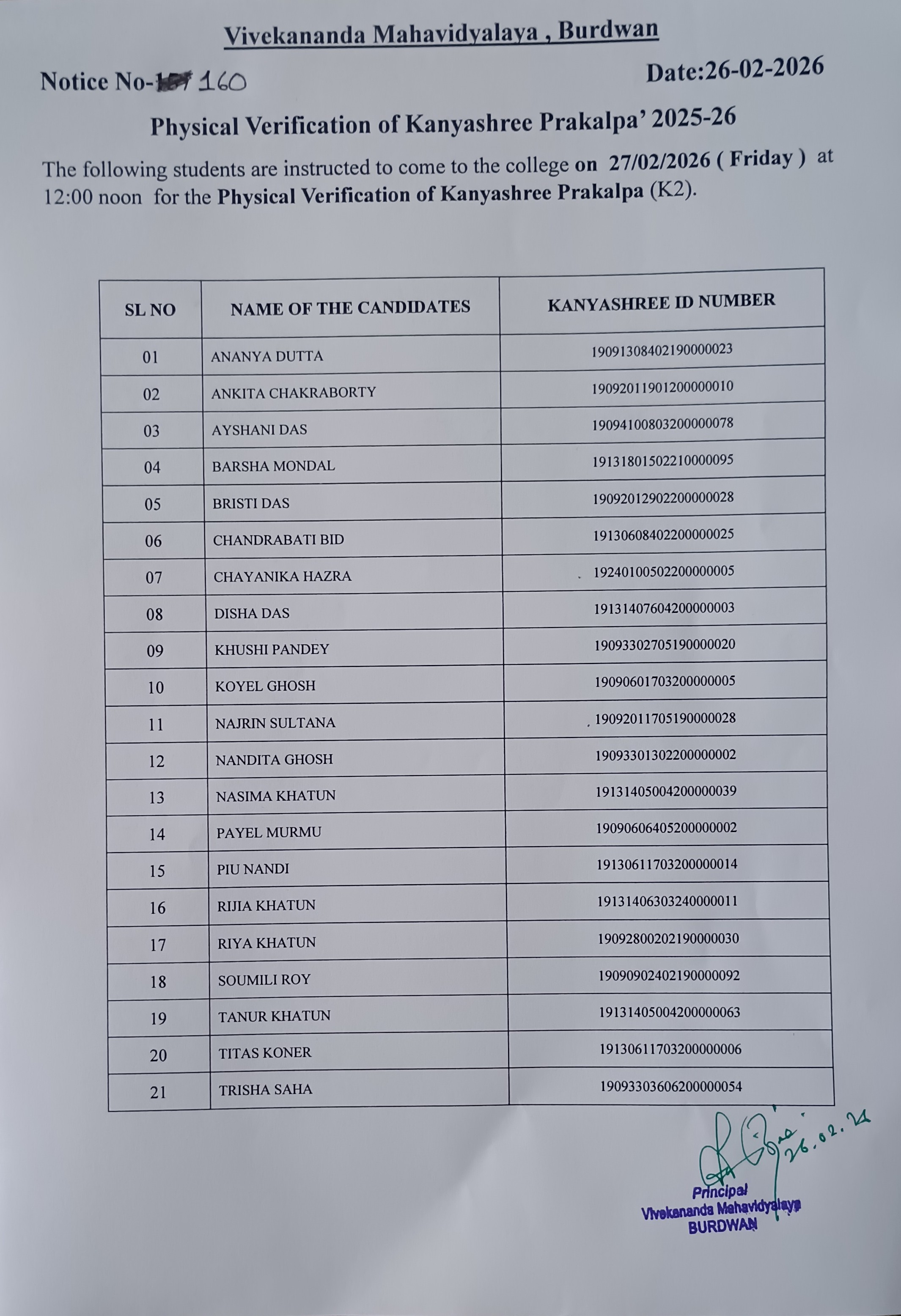 Kanyashree physical verification
