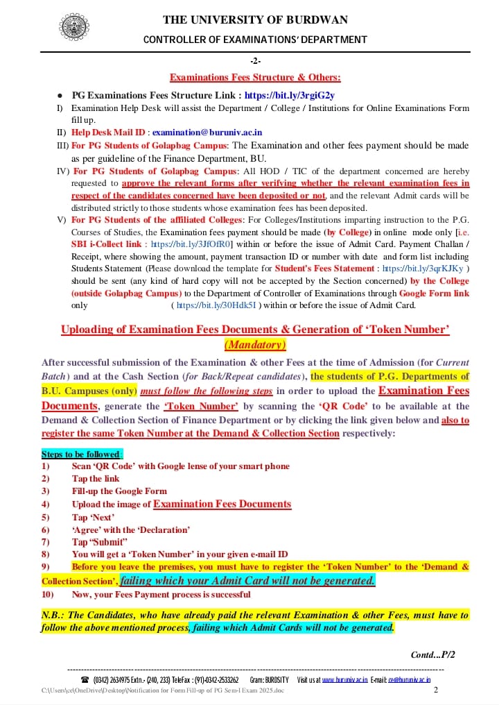 BA /BSc (Hons & Gen) Part-II form fill up date(Day)
